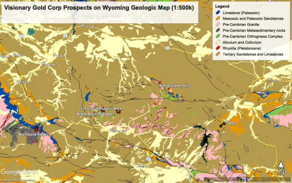 Visionary Gold Corp is a Vancouver-based mineral exploration company focused on making new precious and base metals discoveries in Fremont County, Wyoming, and developing them in a manner that is beneficial to all stakeholders. While central Wyoming has a strong mining history, it has never been systematically explored using modern techniques. The Company now controls a land package greater than 50 square kilometres with numerous drill ready targets, all accessible by road and within a one-hour drive from Visionary’s US headquarters in Lander Wy.