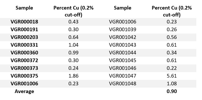 Table 2. Rock Samples from Tin Cup Area at 0.2% Copper Cut-Off